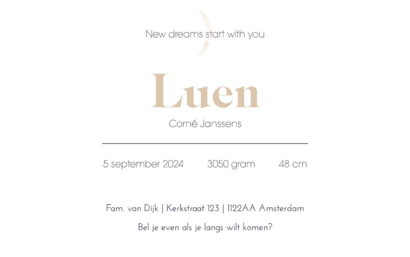 Ontwerp je eigen, unieke poster en helemaal op maat gemaakt, bijvoorbeeld geïnspireerd op een geboortekaartje zoals hieronder.